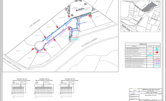 - Diseño y construcción de red de medio y bajo voltaje subterránea con el montaje de un trasformador trifásico tipo pedestal de 75 kVA.